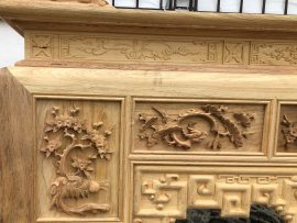 Hoàn thiện mộc một bộ án gian thờ theo mẫu yêu cầu riêng của bác Vũ. Sau khi xong phần mộc của từng chi tiết, cấu kiện, cơ sở sản xuất đồ mỹ nghệ Thanh Tùng sẽ tiến hành dựng hoàn thiện mộc để khách hàng kiểm tra chất lượng họa tiết và loại gỗ. Khi đã đạt yêu cầu mới sơn phủ và lên màu hoàn thiện.