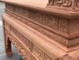 - Án gian thờ được chế tác từ chất liệu gỗ hương đá tự nhiên cao cấp đã qua xử lý tẩm sấy chống mối mọt, cong vênh, nứt nẻ. Đem lại cho bộ sản phẩm độ bền hàng chục, hàng trăm năm.