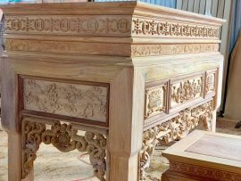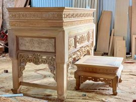 Hoàn thiện mộc bộ án gian thờ Như Ý cách tân theo yêu cầu riêng của chú Tịnh ở Quỳnh Lưu (Nghệ An). Sau khi thống nhất kích thước và hoạ tiết chạm đục cho bộ án gian, nghệ nhân của đồ gỗ Thanh Tùng mất hơn 1 tháng để hoàn thành mẫu, chọn gỗ và đục hoàn công những hoạ tiết trang trí các bác thấy được qua một số hình ảnh bên dưới đây.
