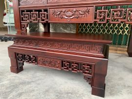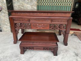 - Bộ án gian thờ của bác Bốn là mẫu sen triện gỗ gụ gồm 2 món: 1 án gian thờ và 1 bàn cơm.