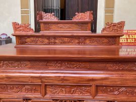 - Chế tác từ 100% chất liệu gỗ hương đá nên bộ sản phẩm được đảm bảo độ hoàn thiện cao của những họa tiết chạm đục trang trí. Bên cạnh đó, án gian thờ gỗ hương đá cũng được đánh giá cao về giá trị sự dụng lâu bền, có thể lên đến hàng trăm năm.