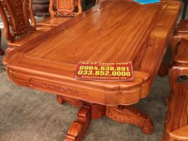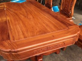 Bàn hình chữ nhật được cua góc số 3 rất đẹp. Bên cạnh đó những đường vân cùng màu sắc nguyên thủy của gỗ gõ đỏ đã tạo nên sự đặc sắc cho sản phẩm này.