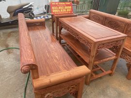 Đơn đặt hàng bộ bàn ghế trường kỷ của cô Mai ở Thanh Xuân, Hà Nội vừa được Đồ gỗ Thanh Tùng hoàn thành. Với mong muốn của cô Mai, bộ trường kỷ được thiết kế bởi đội ngũ giàu kinh nghiệm tại xưởng Thanh Tùng mang trên mình những hoa văn tinh tế, trang nhã, uốn lượn trên nền gỗ hương đá vân cao cấp màu sắc tự nhiên, mang lại cảm giác thanh tao, thoáng chút hơi thở trăm năm còn vọng lại.