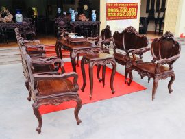 Bộ bàn ghế gỗ 9 món Louis Hoàng Gia 3 buồng thiết kế độc đáo gồm