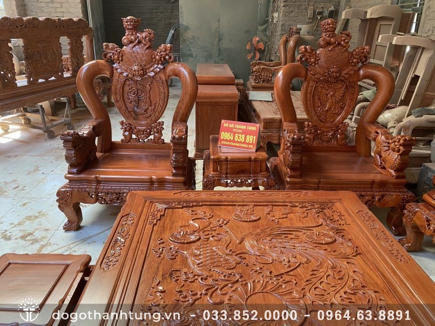 Chúng tôi vừa hoàn thiện xong bộ bàn ghế Minh Quốc Nghê Phượng gỗ hương đá tay 12 và bàn giao cho anh Minh (Hải Phòng). Hàng đặt riêng nên những người thợ của Đồ Gỗ Thanh Tùng đã rất kỳ công và tỉ mỉ từng chi tiết nhỏ đề lột tả được chuẩn nhất yêu cầu của anh Minh và tạo ra bộ bàn ghế độc nhất vô nhị này.