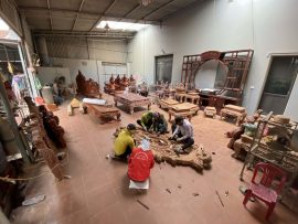Đồ gỗ Thanh Tùng vừa hoàn thiện bộ Rồng Khuỳnh Nghê Đỉnh gỗ hương đá trả cho anh Vinh ở thành phố Lào Cai. Anh Vinh đặc biệt đặt bộ bàn ghế gỗ 12 món làm từ 100% gỗ hương đá cho ngôi nhà mới. Những người thợ của Thanh Tùng đã làm việc ngày đêm, xuyên suốt 3 tuần để kịp trả cho anh Vinh trước ngày tân gia. Từng đường nét trạm trổ đều được người thợ thực hiện tỉ mỉ, tinh tế và toát được linh hồn của sản phẩm. Anh Vinh rất tâm đắc khi nhận được bô bàn ghế này.