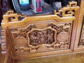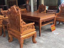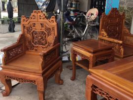 Sau khi nhận được đơn đặt hàng của anh Hướng, các nghệ nhân lành nghề của Đồ gỗ Thanh Tùng chúng tôi đã cho ra mắt siêu phẩm trường kỷ được đục hoàn toàn bằng tay. Các họa tiết chính ngũ lân vờn cầu rất tinh xảo và sắc nét. Điểm xuyết xung quanh là các nét triện đục mộng thủng. Từng chi tiết được sắp xếp hài hòa, phối theo lối cổ chuẩn trường kỷ Huế.