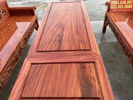 - Sản phẩm sử dụng 100% gỗ hương đá nguyên tấm, được xẻ cân đối. Mặt ghế tràn dày 2 phân. Để có được tấm mặt ghế phẳng mịn không chắp vá xưởng đồ gỗ mỹ nghệ Thanh Tùng đã phải lựa chọn thật kỹ cây gỗ to, không nứt. Đặc biệt gỗ gụ có thớ gỗ mịn, nặng, ít co ngót hay cong vênh nên các bác yên tâm sử dụng.