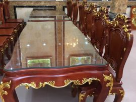 Mời quý anh chị chiêm ngưỡng combo bàn ghế phòng khách và bàn ghế ăn Hoàng Gia gỗ hương đá dát vàng của đại gia Ninh Bình: