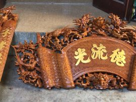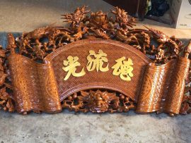 - 1 hoành phi dạng cuốn thư mẫu Long Hóa khảm ĐỨC – LƯU – QUANG