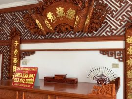 Trả hàng cho chú Liêm ở Lương Sơn (Hoà Bình) một bộ combo nội thất phòng thờ gồm 1 bộ sập thờ mai điểu và 1 bộ hoành phi câu đối ĐỨC – LƯU – QUANG với thông số cụ thể như sau: