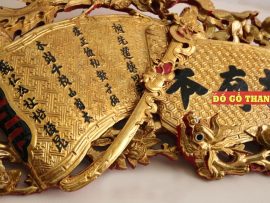 – Nước sơn: Thếp vàng nền gấm, chữ đen