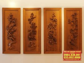 Các mẫu tranh gỗ Tứ Quý – Tùng Cúc Trúc Mai đục kênh bong 3D vô cùng tinh xảo hoàn toàn bằng tay, đang là xu hướng lựa chọn của nhiều gia đình.