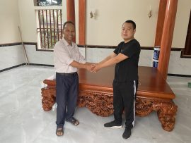 Bàn giao cho anh Hưng ở Yên Lạc (Vĩnh Phúc) bộ Sập thập điểu quần mai 1m8x2m2 gỗ gụ Nam Phi cổ liền. Anh Hưng đang công tác ở miền Nam, biết đến xưởng qua kênh youtube, tin tưởng đặt hàng của xưởng. Nhà vừa sơn xong chiếc sập được ưu tiên cho vào đặt trong nhà, vừa tăng vẻ đẹp sang trọng vừa thể hiện đẳng cấp của chủ nhân. Bác Hùng bố anh Hưng nhận hàng ưng ý ngay với bộ sập gỗ chân quỳ này từ cái nhìn đầu tiên.