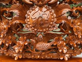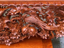 - Sập thờ Mai điểu: dài 2m17 x sâu 1m17 x cao 1m27, chân 30cm, dạ 12cm liền tấm đục hai tầng cổ chỉ dày 5cm bồng bềnh, mềm mại.