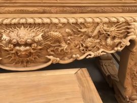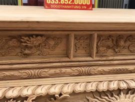 Sập thờ đục tứ linh siêu khủng gỗ gụ lào chân 24 (anh Trai, Điện Biên)Sập thờ Tứ Linh truyền thống chạm nổi rồng, phượng, nét chạm khắc rất tỉ mỉ, cầu kỳ và thanh thoát theo tiêu chuẩn rất caoCổ sập thờ nong khung dày dặn đục rồng trầu mặt nguyệt đối xứng cân bằngHọa tiết tứ linh Long – Ly – Quy – Phượng được chạm nổi hai bên dạ tiền.