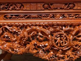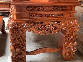 - Sập thờ của anh Hoàng đươc chế tác từ gỗ hương đá nhiên cao cấp, chất gỗ tốt lại được trải qua quy trình ngâm tẩm sấy và xử lí kĩ lưỡng, khắc phục được nhược điểm của gỗ tự nhiên. Sập thờ gỗ hương đá bền đẹp, chống chịu mối mọt tốt, không bị cong vênh khi thay đổi thời tiết.