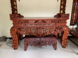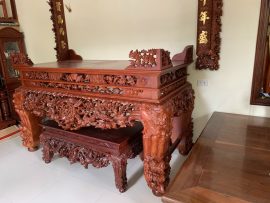 Gia đình chú Hướng rất hài lòng về combo sập thờ mai điểu và bộ cuốn thư câu đối mai hóa long bằng gỗ gụ Lào. Sau đây, xin mời quý vị chiêm ngưỡng bộ sản phẩm đẹp mắt, thiết kế hết sức công phu, tinh xảo này: