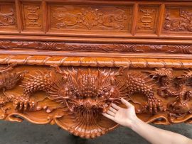 Hàng làm rất kỹ, từng chi tiết chạm đục đẹp lung linh do bàn tay nghệ nhân xưởng gỗ Thanh Tùng sáng tạo ra.