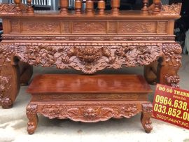 Xưởng đồ gỗ mỹ nghệ Thanh Tùng vừa hoàn thiện xong cho anh Hoàn ở Bắc Giang một bộ sập thờ gỗ gụ mẫu đục tứ linh cùng 1 bàn cơm cùng chất liệu. Trang hoàng căn phong thờ thêm phần uy nghi, cổ kính và linh thiêng.