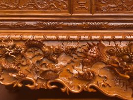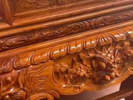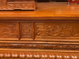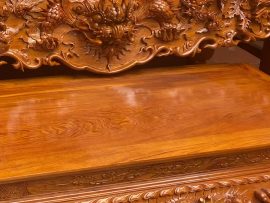 Xưởng đồ gỗ mỹ nghệ Thanh Tùng vừa hoàn thiện xong bộ sập thờ tứ linh chất liệu gỗ hương đá đục thủ công 100% cho chú Bình ở Nghệ An. Bộ sản phẩm gồm 1 sập thờ và 1 bàn cơm cùng chất liệu phủ PU lên màu bóng loáng.