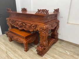 Sập thờ đục khắc tứ linh thể hiện được ước mong mọi chuyện được mưa thuận gió hòa, công việc suôn sẻ, thuận lợi, làm việc gì cũng giữ được nhiệt huyết, sự bình tĩnh và vững trãi như đất trời nên thường nhiều gia đình lựa chọn làm bàn thờ trong gia đình, ban thờ nhà thờ họ…