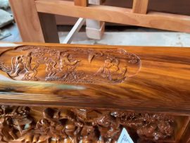 Trường kỷ đục tích Tam Quốc đẹp từng milimet được thợ mộc số 1 trong làng nghề Liên Hà dựng kỹ, đục thủ công 100% tỉ mỉ từng nét.