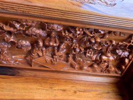 Đồ gỗ Thanh Tùng hoàn thiện đúng lịch trình bộ trường kỷ cỡ đại đục tích Tam Quốc gỗ gụ ta vân siêu đỉnh cho Chú Thực (Yên Mỹ – Hưng Yên) để kịp đón lộc đầu năm. Trang hoàng phòng khách sang trọng hơn để đón khách chơi nhà.